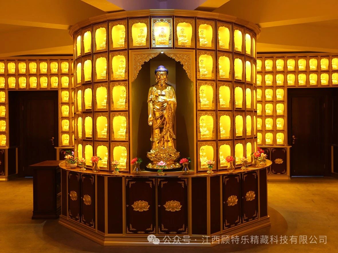 我們深信,真正的藝術(shù)與設(shè)計(jì)不僅僅是形式的創(chuàng)新,更是對(duì)深厚文化底蘊(yùn)的尊重與傳承。作為現(xiàn)代萬(wàn)佛墻設(shè)計(jì)的領(lǐng)航者,我們巧妙地將傳統(tǒng)佛教文化的精髓與現(xiàn)代設(shè)計(jì)理念相融合,為信眾打造既具時(shí)代感又不失莊嚴(yán)神圣的供奉空間。
