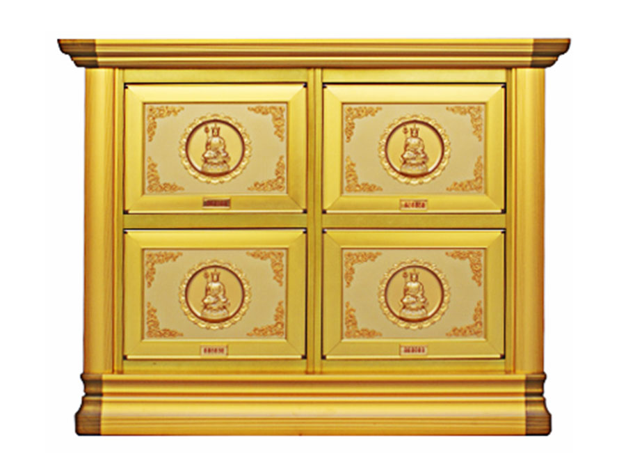骨灰存放架是由箱體、面板、側板、頂蓋、底座、轉角、封板等構成,以及佛臺、掛落、佛 龕等相關配件構成。 箱體:分鍍鋅板、不銹鋼板、鋁板等五金板材箱體,鋁合金中空板扣接式箱體和純鋁壓鑄型 箱體。 面板:面板根據工藝不同、材料不同,風格各異、大不相同,既要起到美觀易分類作用,又 要起到防火、防塵、防潮、防蟲等作用。 側板:用于裝飾和保護箱體側面的作用,又可根據現(xiàn)場,對存放架分類的標識作用,一目了 然方便管理。 頂蓋、底座:都是穩(wěn)固整列和整排箱體水平線,底座還起到一部分承重作用。 轉角、封板:箱體轉彎處和空隙處塑形的作用。 佛臺:由幾個骨灰存放架組成一個小型佛龕臺,用于放置佛像。 佛龕、掛落:整排存放架為了劃分區(qū)域,在每個區(qū)域靠墻上方,設置小型佛龕,為了美觀, 加上掛落。