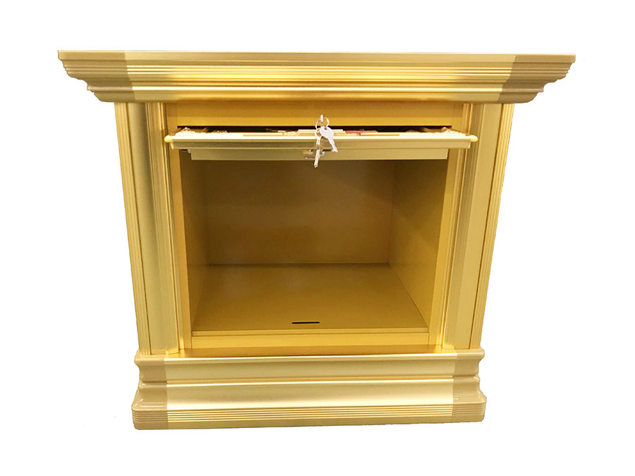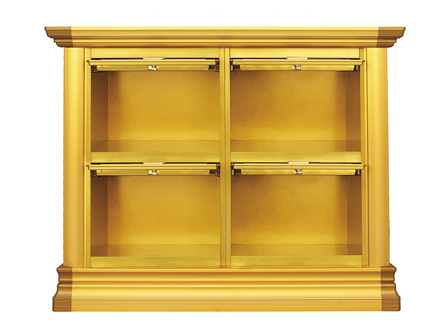 骨灰存放架是由箱體、面板、側(cè)板、頂蓋、底座、轉(zhuǎn)角、封板等構(gòu)成,以及佛臺(tái)、掛落、佛 龕等相關(guān)配件構(gòu)成。 箱體:分鍍鋅板、不銹鋼板、鋁板等五金板材箱體,鋁合金中空板扣接式箱體和純鋁壓鑄型 箱體。 面板:面板根據(jù)工藝不同、材料不同,風(fēng)格各異、大不相同,既要起到美觀易分類作用,又 要起到防火、防塵、防潮、防蟲等作用。 側(cè)板:用于裝飾和保護(hù)箱體側(cè)面的作用,又可根據(jù)現(xiàn)場(chǎng),對(duì)存放架分類的標(biāo)識(shí)作用,一目了 然方便管理。 頂蓋、底座:都是穩(wěn)固整列和整排箱體水平線,底座還起到一部分承重作用。 轉(zhuǎn)角、封板:箱體轉(zhuǎn)彎處和空隙處塑形的作用。 佛臺(tái):由幾個(gè)骨灰存放架組成一個(gè)小型佛龕臺(tái),用于放置佛像。 佛龕、掛落:整排存放架為了劃分區(qū)域,在每個(gè)區(qū)域靠墻上方,設(shè)置小型佛龕,為了美觀, 加上掛落。