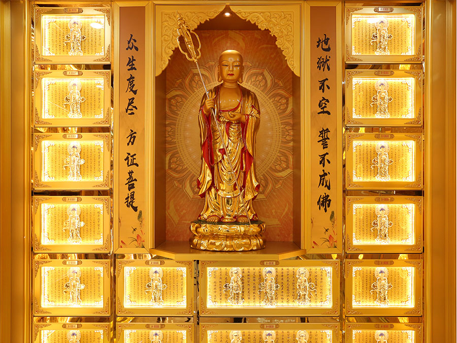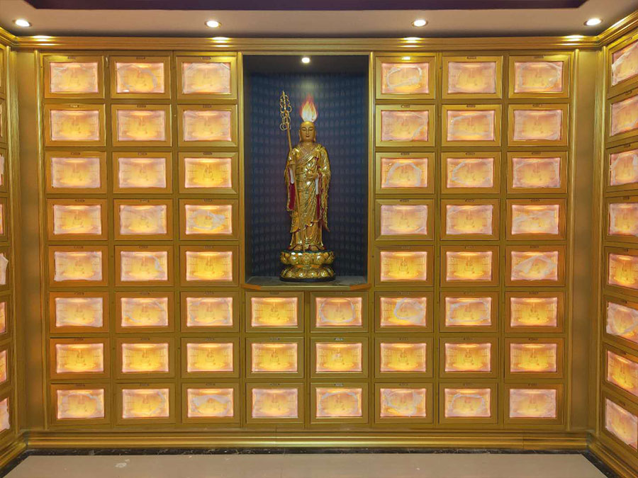 佛臺(tái):由幾個(gè)骨灰存放架組成一個(gè)小型佛龕臺(tái),用于放置佛像。
