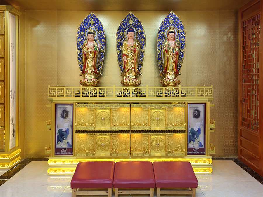 佛臺(tái):由幾個(gè)骨灰存放架組成一個(gè)小型佛龕臺(tái),用于放置佛像。