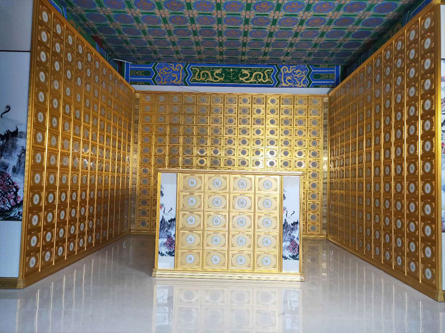 骨灰存放架是由箱體、面板、側(cè)板、頂蓋、底座、轉(zhuǎn)角、封板等構(gòu)成,以及佛臺(tái)、掛落、佛龕等相關(guān)配件構(gòu)成。