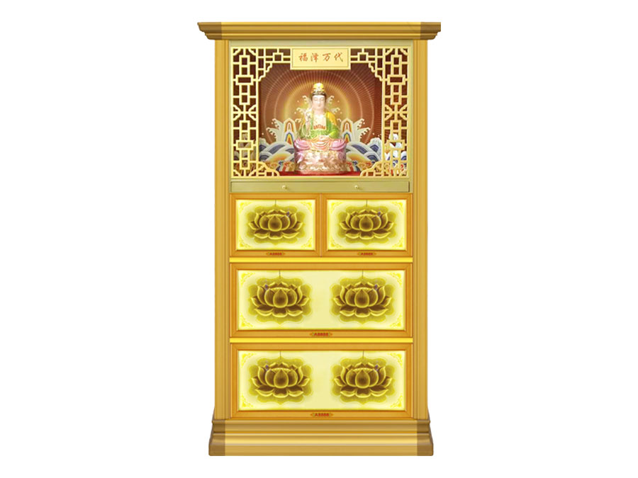 骨灰存放架是由箱體、面板、側(cè)板、頂蓋、底座、轉(zhuǎn)角、封板等構(gòu)成,以及佛臺、掛落、佛 龕等相關(guān)配件構(gòu)成。 箱體:分鍍鋅板、不銹鋼板、鋁板等五金板材箱體,鋁合金中空板扣接式箱體和純鋁壓鑄型 箱體。 面板:面板根據(jù)工藝不同、材料不同,風(fēng)格各異、大不相同,既要起到美觀易分類作用,又 要起到防火、防塵、防潮、防蟲等作用。 側(cè)板:用于裝飾和保護(hù)箱體側(cè)面的作用,又可根據(jù)現(xiàn)場,對存放架分類的標(biāo)識作用,一目了 然方便管理。 頂蓋、底座:都是穩(wěn)固整列和整排箱體水平線,底座還起到一部分承重作用。 轉(zhuǎn)角、封板:箱體轉(zhuǎn)彎處和空隙處塑形的作用。 佛臺:由幾個骨灰存放架組成一個小型佛龕臺,用于放置佛像。 佛龕、掛落:整排存放架為了劃分區(qū)域,在每個區(qū)域靠墻上方,設(shè)置小型佛龕,為了美觀, 加上掛落。