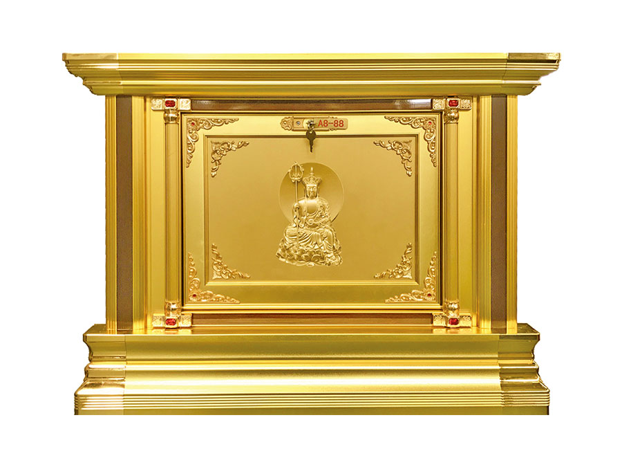 骨灰存放架是由箱體、面板、側(cè)板、頂蓋、底座、轉(zhuǎn)角、封板等構(gòu)成,以及佛臺、掛落、佛 龕等相關(guān)配件構(gòu)成。 箱體:分鍍鋅板、不銹鋼板、鋁板等五金板材箱體,鋁合金中空板扣接式箱體和純鋁壓鑄型 箱體。 面板:面板根據(jù)工藝不同、材料不同,風(fēng)格各異、大不相同,既要起到美觀易分類作用,又 要起到防火、防塵、防潮、防蟲等作用。 側(cè)板:用于裝飾和保護(hù)箱體側(cè)面的作用,又可根據(jù)現(xiàn)場,對存放架分類的標(biāo)識作用,一目了 然方便管理。 頂蓋、底座:都是穩(wěn)固整列和整排箱體水平線,底座還起到一部分承重作用。 轉(zhuǎn)角、封板:箱體轉(zhuǎn)彎處和空隙處塑形的作用。 佛臺:由幾個(gè)骨灰存放架組成一個(gè)小型佛龕臺,用于放置佛像。 佛龕、掛落:整排存放架為了劃分區(qū)域,在每個(gè)區(qū)域靠墻上方,設(shè)置小型佛龕,為了美觀, 加上掛落。