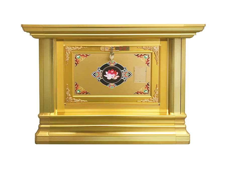 骨灰存放架是由箱體、面板、側板、頂蓋、底座、轉(zhuǎn)角、封板等構成,以及佛臺、掛落、佛 龕等相關配件構成。 箱體:分鍍鋅板、不銹鋼板、鋁板等五金板材箱體,鋁合金中空板扣接式箱體和純鋁壓鑄型 箱體。 面板:面板根據(jù)工藝不同、材料不同,風格各異、大不相同,既要起到美觀易分類作用,又 要起到防火、防塵、防潮、防蟲等作用。 側板:用于裝飾和保護箱體側面的作用,又可根據(jù)現(xiàn)場,對存放架分類的標識作用,一目了 然方便管理。 頂蓋、底座:都是穩(wěn)固整列和整排箱體水平線,底座還起到一部分承重作用。 轉(zhuǎn)角、封板:箱體轉(zhuǎn)彎處和空隙處塑形的作用。 佛臺:由幾個骨灰存放架組成一個小型佛龕臺,用于放置佛像。 佛龕、掛落:整排存放架為了劃分區(qū)域,在每個區(qū)域靠墻上方,設置小型佛龕,為了美觀, 加上掛落。