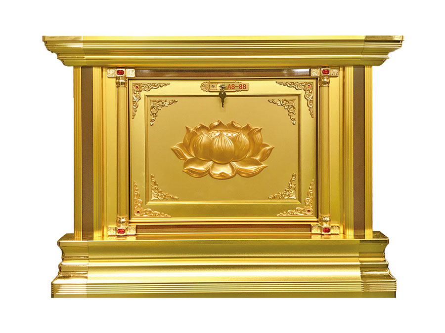 骨灰存放架是由箱體、面板、側(cè)板、頂蓋、底座、轉(zhuǎn)角、封板等構(gòu)成,以及佛臺(tái)、掛落、佛 龕等相關(guān)配件構(gòu)成。 箱體:分鍍鋅板、不銹鋼板、鋁板等五金板材箱體,鋁合金中空板扣接式箱體和純鋁壓鑄型 箱體。 面板:面板根據(jù)工藝不同、材料不同,風(fēng)格各異、大不相同,既要起到美觀易分類作用,又 要起到防火、防塵、防潮、防蟲等作用。 側(cè)板:用于裝飾和保護(hù)箱體側(cè)面的作用,又可根據(jù)現(xiàn)場(chǎng),對(duì)存放架分類的標(biāo)識(shí)作用,一目了 然方便管理。 頂蓋、底座:都是穩(wěn)固整列和整排箱體水平線,底座還起到一部分承重作用。 轉(zhuǎn)角、封板:箱體轉(zhuǎn)彎處和空隙處塑形的作用。 佛臺(tái):由幾個(gè)骨灰存放架組成一個(gè)小型佛龕臺(tái),用于放置佛像。 佛龕、掛落:整排存放架為了劃分區(qū)域,在每個(gè)區(qū)域靠墻上方,設(shè)置小型佛龕,為了美觀, 加上掛落。