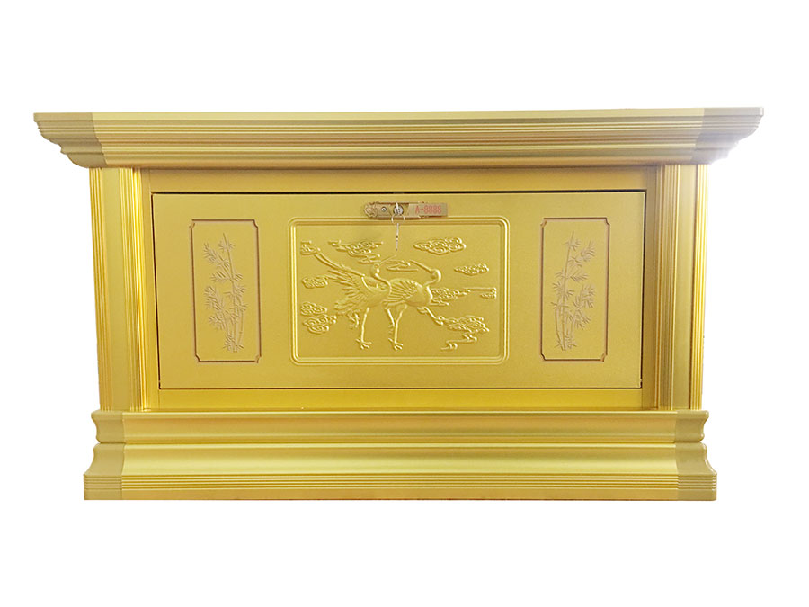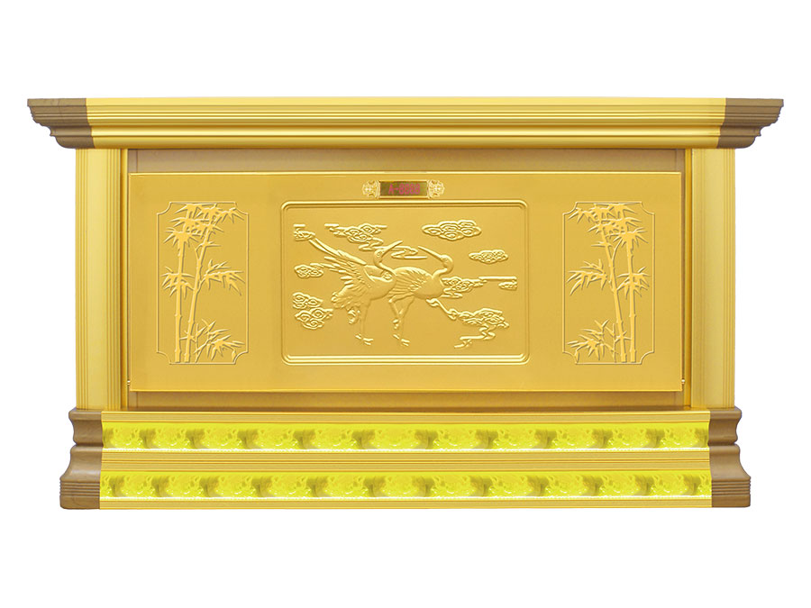 骨灰存放架是由箱體、面板、側板、頂蓋、底座、轉角、封板等構成,以及佛臺、掛落、佛 龕等相關配件構成。 箱體:分鍍鋅板、不銹鋼板、鋁板等五金板材箱體,鋁合金中空板扣接式箱體和純鋁壓鑄型 箱體。 面板:面板根據工藝不同、材料不同,風格各異、大不相同,既要起到美觀易分類作用,又 要起到防火、防塵、防潮、防蟲等作用。 側板:用于裝飾和保護箱體側面的作用,又可根據現(xiàn)場,對存放架分類的標識作用,一目了 然方便管理。 頂蓋、底座:都是穩(wěn)固整列和整排箱體水平線,底座還起到一部分承重作用。 轉角、封板:箱體轉彎處和空隙處塑形的作用。 佛臺:由幾個骨灰存放架組成一個小型佛龕臺,用于放置佛像。 佛龕、掛落:整排存放架為了劃分區(qū)域,在每個區(qū)域靠墻上方,設置小型佛龕,為了美觀, 加上掛落。