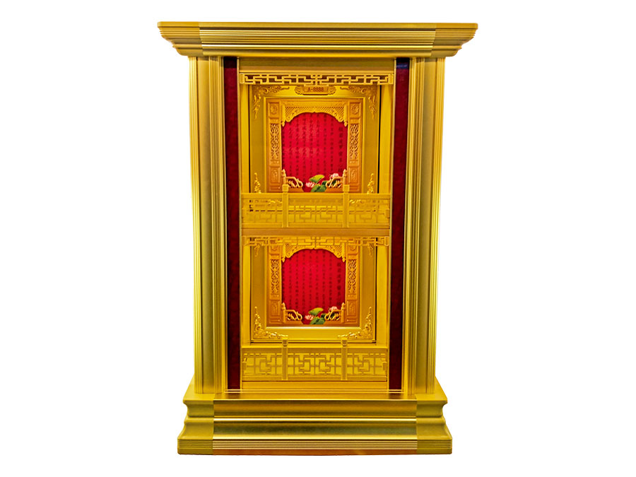 骨灰存放架是由箱體、面板、側(cè)板、頂蓋、底座、轉(zhuǎn)角、封板等構(gòu)成,以及佛臺(tái)、掛落、佛 龕等相關(guān)配件構(gòu)成。 箱體:分鍍鋅板、不銹鋼板、鋁板等五金板材箱體,鋁合金中空板扣接式箱體和純鋁壓鑄型 箱體。 面板:面板根據(jù)工藝不同、材料不同,風(fēng)格各異、大不相同,既要起到美觀易分類(lèi)作用,又 要起到防火、防塵、防潮、防蟲(chóng)等作用。 側(cè)板:用于裝飾和保護(hù)箱體側(cè)面的作用,又可根據(jù)現(xiàn)場(chǎng),對(duì)存放架分類(lèi)的標(biāo)識(shí)作用,一目了 然方便管理。 頂蓋、底座:都是穩(wěn)固整列和整排箱體水平線,底座還起到一部分承重作用。 轉(zhuǎn)角、封板:箱體轉(zhuǎn)彎處和空隙處塑形的作用。 佛臺(tái):由幾個(gè)骨灰存放架組成一個(gè)小型佛龕臺(tái),用于放置佛像。 佛龕、掛落:整排存放架為了劃分區(qū)域,在每個(gè)區(qū)域靠墻上方,設(shè)置小型佛龕,為了美觀, 加上掛落。