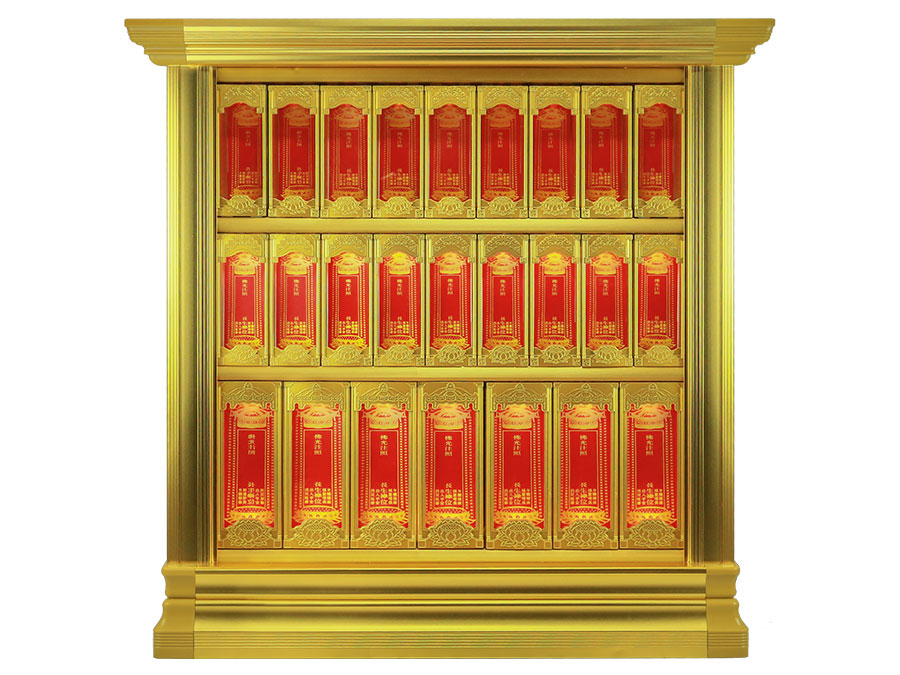 長往生牌位是由盒體、門板、側(cè)板、頂蓋、底座、轉(zhuǎn)角、地臺、封板等構(gòu)成。